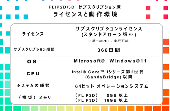 FLIP ROSE 2D/3D サブスクリプション版は、366日間のサブスクリプションライセンスです。