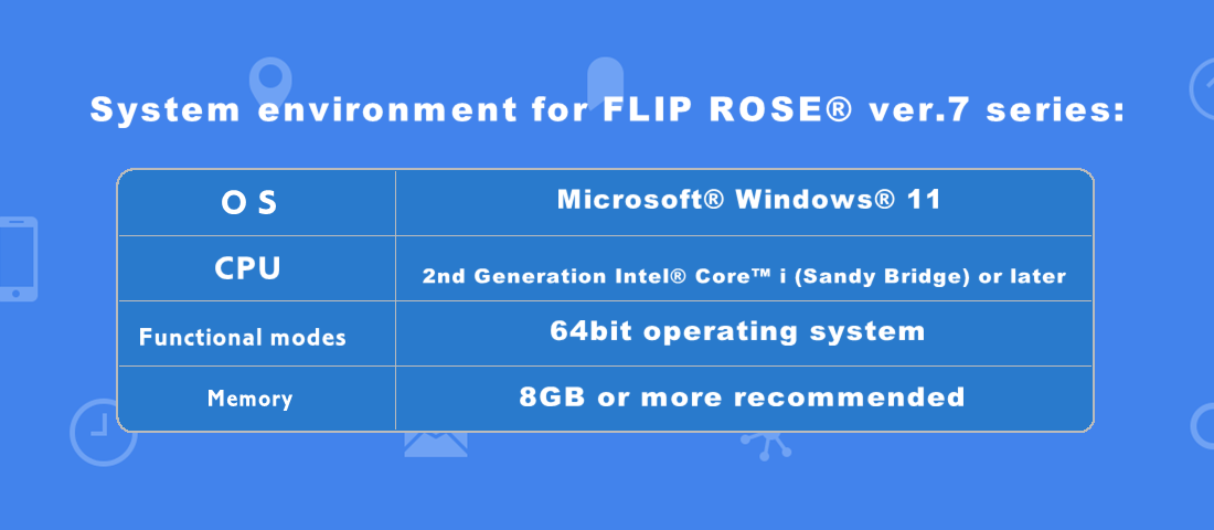 PC meets the system requirements for run of FLIP ROSE ver. 7 Series or